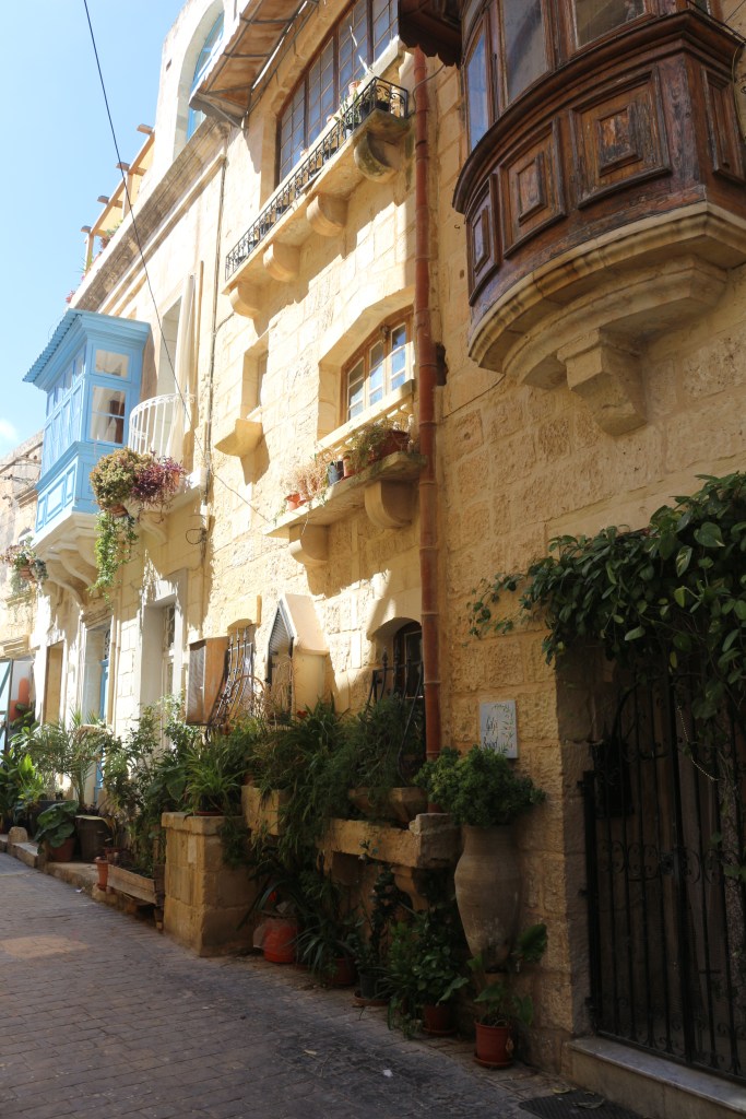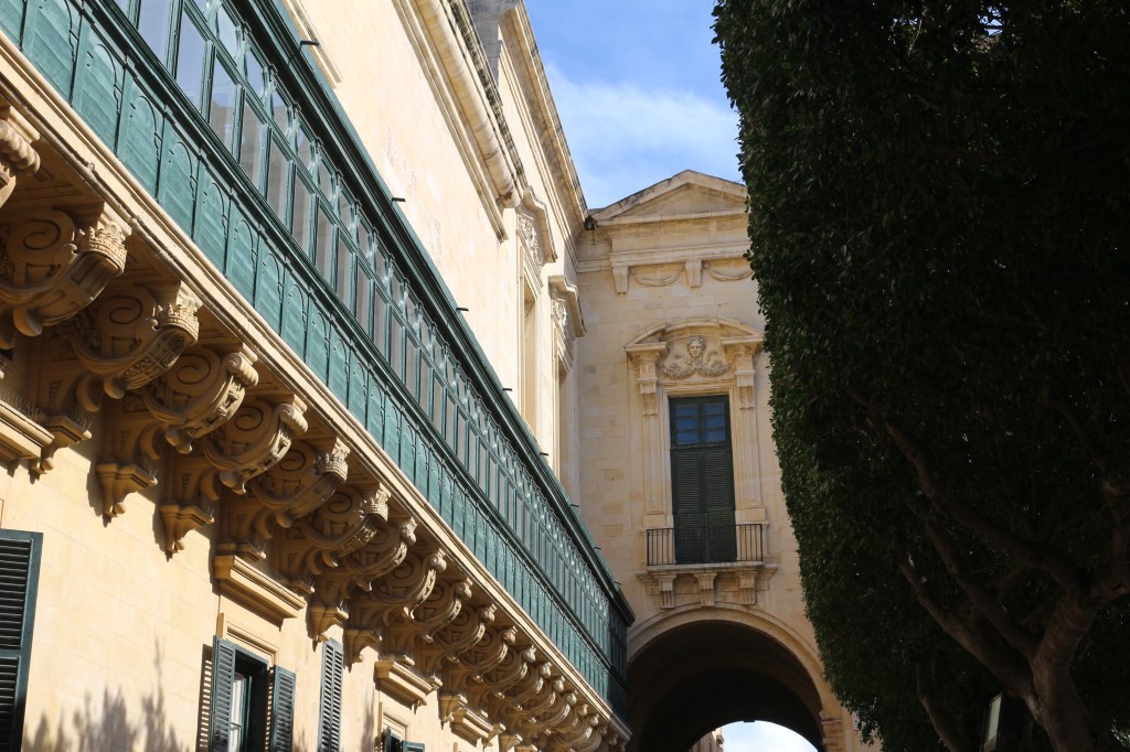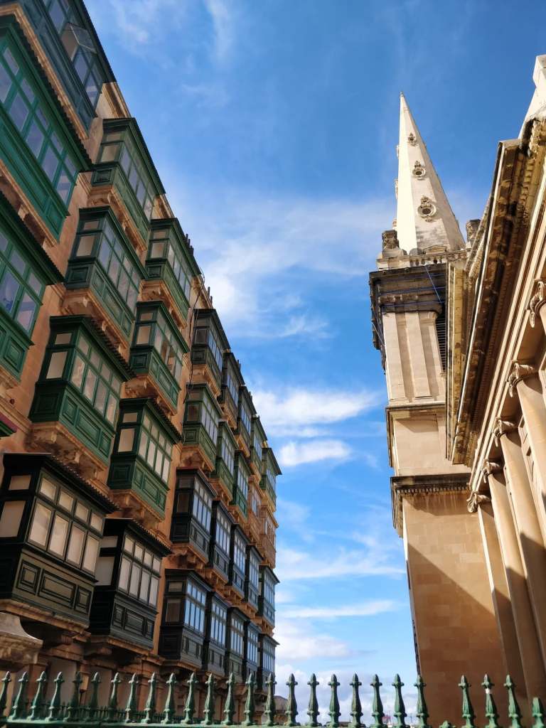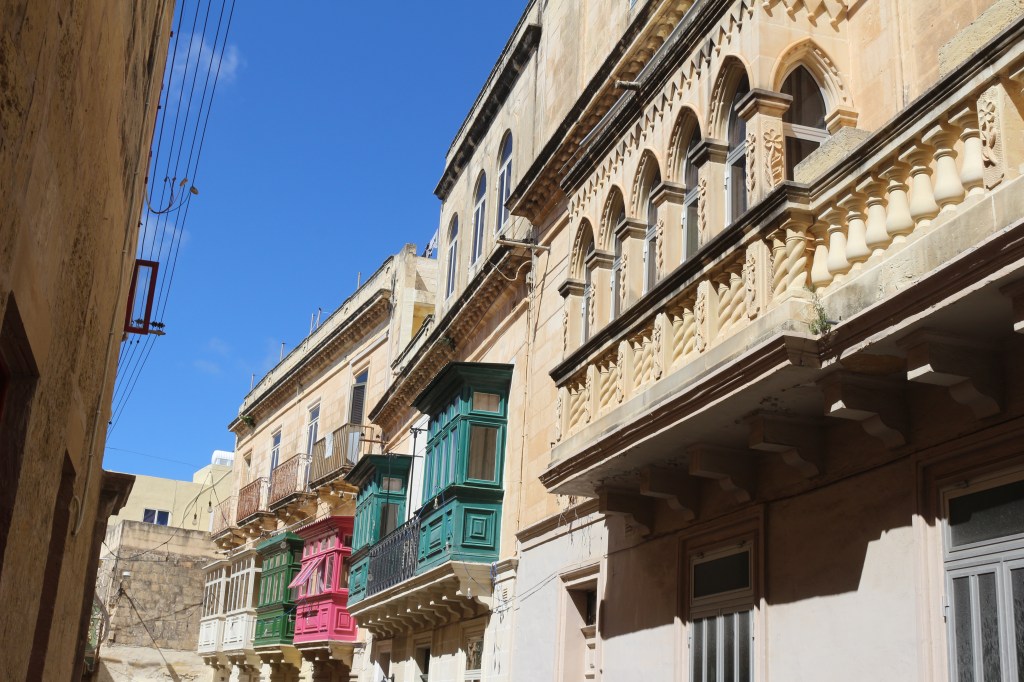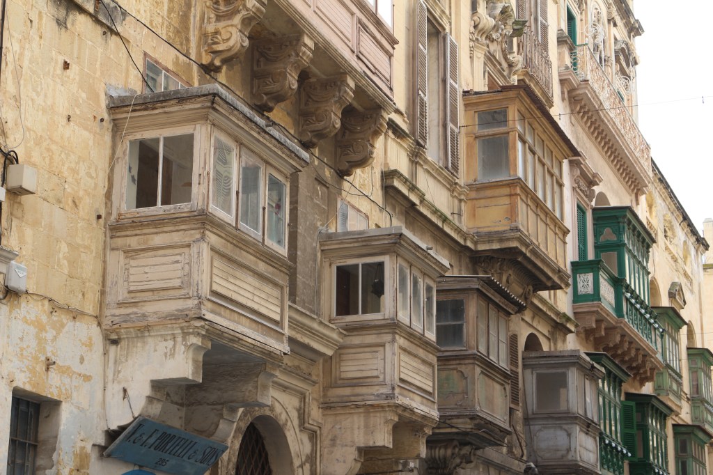 Une visite de l’île de Malte devait forcément commencer par sa capitale La Valette, pour ma part. Cette cité fortifiée fut construite dans les années 1500 par les chevaliers de Saint-Jean, un ordre catholique romain. Il faut se perdre dans ses ruelles pavées du XVIe siècle. Lever les yeux pour en admirer ses magnifiques bow-windows colorées sur ses façades élégantes. Il s’agit de fenêtres avec des baies vitrées qui s’avancent sur la rue. Le premières fenêtres de ce style sont apparues au XVIIIe siècle au Royaume-Uni.