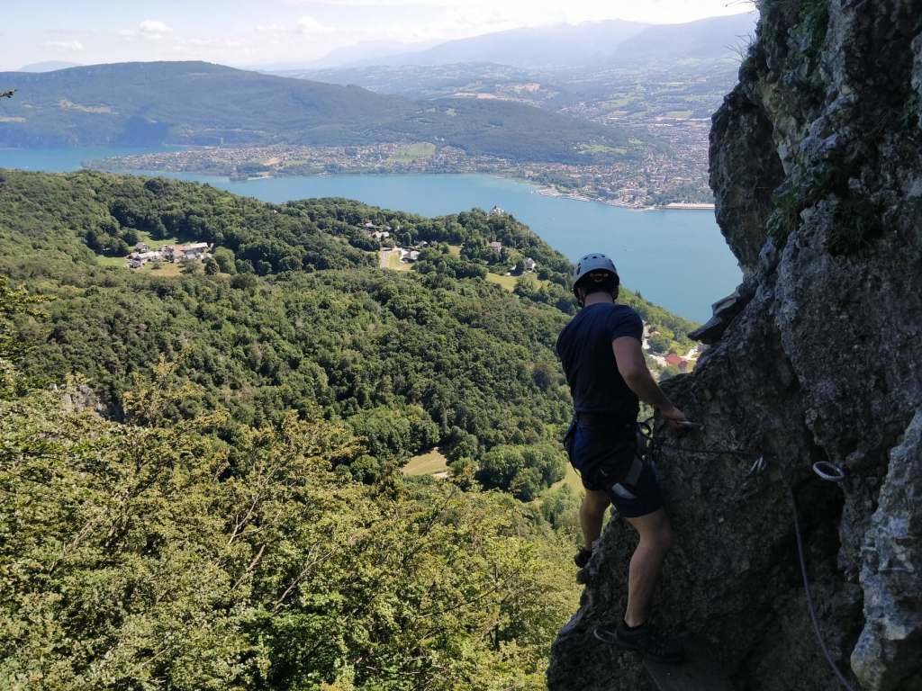 C’est une via ferrata idéale pour une s’initier à cette activité ! Située au col du chat, elle est accessible par une marche d’approche (assez raide) d’environ 30 minutes. La via ferrata dure environ 1h. Elle consiste à contourner le Roc du Cornillon qui donne sur le lac du haut de ses 845m. Poutres, passerelles, pont de singe, échelles… Un super moment qui permet d’avoir un point de vue surprenant sur le lac en se confrontant au vide. À faire de préférence en matinée lorsqu’elle est encore à l’ombre !