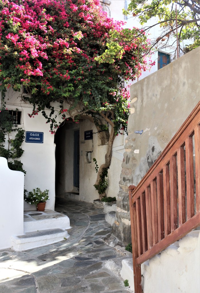 Découverte de Náxos à pied, de ses ruelles qui montent et débouchent sur des petits places charmantes. Petit aperçu en photos juste ici :