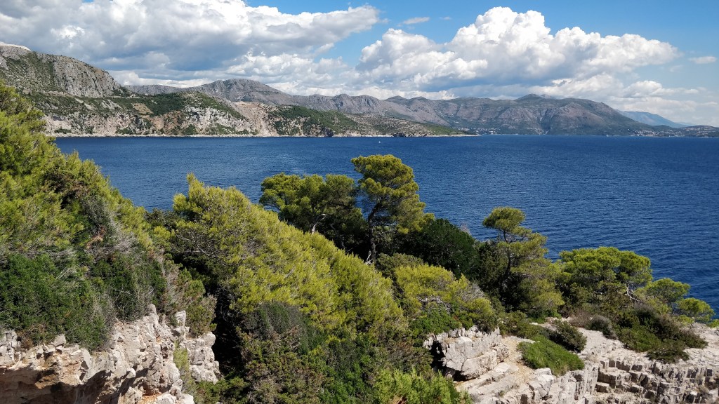 Dernier petit déjeuner sur notre terrasse à Dubrovnik. Nous allons récupérer notre voiture de location pour le reste de notre séjour. (Plus d’infos en fin d’article dans « Infos pratiques ») Une journée sur la route entre Dubrovnik et Split (3h. Premier arrêt à Trsteno. Puis pause pique-nique sur la rivieira Makarska et baignade sur la plage Duba. Un petit coin de paradis à l’ombre des pins. Attention les parking sont payants pour la plupart des plages en Croatie.