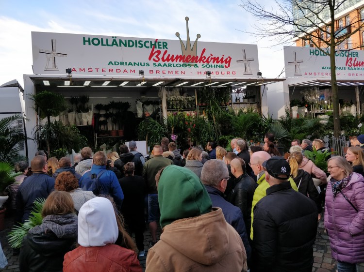 Certains boivent leur dernière bière de leur « soirée », pendant que d’autres en sont à leur première de la journée. Une ambiance vraiment atypique qu’il ne faut pas rater lors d’une visite à Hambourg ! Je faisais partie des lève-tôt avec Gefion (mon amie allemande) ce jour-là. Alors que des fêtards avaient passé toute la nuit à faire la fête dans le quartier de St Pauli avant de venir au Fischmarkt.