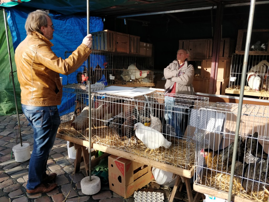 Des vendeurs en tous genres crient leurs offres du jour, les primeurs vendent aux enchères des paniers de fruits et légumes…On peut également se procurer des fleurs…La foule s’empresse autour de chaque stand pour faire LA bonne affaire.