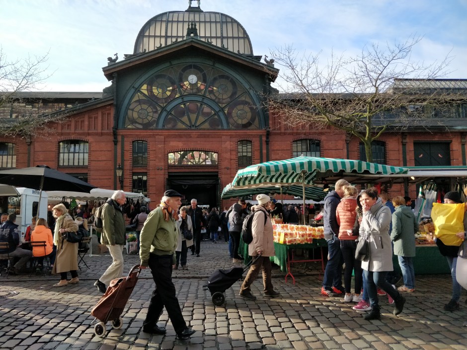 Au centre du marché on retrouve la Fischauktionshalle, autrement dit la halle de vente aux enchères des poissons (sa fonction d’origine). C’est un magnifique bâtiment datant de 1896. Il n’accueille plus de marché. Mais tous les dimanches à partir de 4h30 du matin en été et 6h en hiver, des groupes de rock se succèdent sur scène. Toutes les générations se croisent ici, un verre de bière à la main autour de grandes tables en bois.