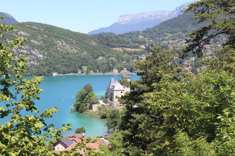 Ensuite c’est parti pour découvrir les plus beaux endroits autour du lac d’Annecy. On commence par la rive est. Première étape du tour du lac direction Menthon-Saint Bernard. Son château domine le lac. Si vous avez le budget adapté vous pouvez passer la nuit au palace de Menthon. Un vrai bijou qui se laisse contempler « gratuitement » de l’extérieur évidemment. Sinon je vous recommande le Pavillon des fleurs. L’établissement donne sur le lac. Autant vous dire qu’ouvrir ses volets et se retrouver nez à nez avec les eaux cristallines du lac de bon matin, ça n’a pas de prix. Et puis la salle à manger dispose d’une baie vitrée qui donne sur le lac ! J’ai adoré me baigner de ce côté du lac même si il n’y a pas vraiment de plage. Mais le cadre est juste sublime !